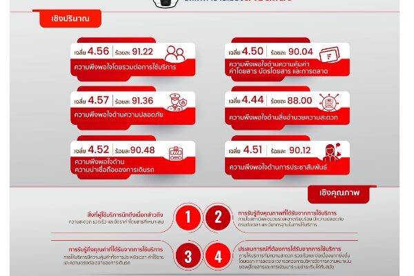 สายสีแดง เผยผลสำรวจความพึงพอใจครึ่งปีแรก ผู้โดยสารเชื่อมั่นคุณภาพการให้บริการเดินรถไฟฟ้าและมาตรฐานด้านความปลอดภัย
