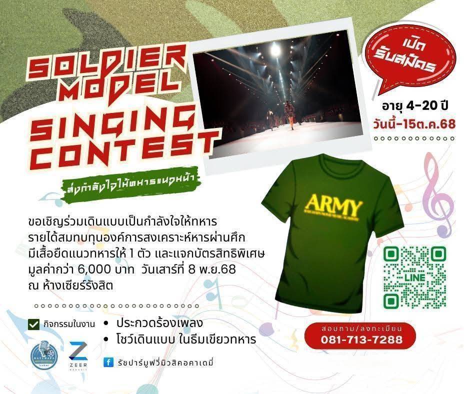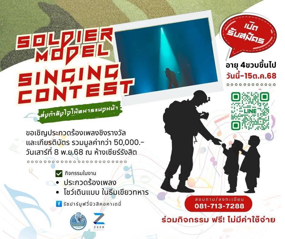 สายสีแดง ร่วมกับโรงเรียนสอนดนตรี และเซียร์รังสิต จัดกิจกรรมประกวดร้องเพลงธีมทหารเพื่อส่งมอบกำลังใจไปให้ทหารชายแดน ชิงของรางวัลกว่า 50,000 บาท และ Gift Set จาดรถไฟฟ้าสายสีแดง ในวันที่ 8 พย. 68 สมัครฟรี ไม่มีค่ามีค่าใช้จ่ายครับ