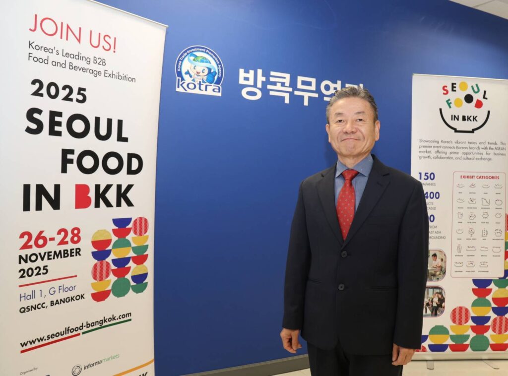 สำหรับการส่งเสริมความร่วมมือและความสัมพันธ์ระหว่างเกาหลีและไทยถือว่าเป็นพันธมิตรที่เหนียวแน่น ทั้งด้านเศรษฐกิจ สังคม และวัฒนธรรม ประเทศไทยยังเป็นจุดยุทธศาสตร์สำคัญของโลจิสติกส์และเป็นผู้นำในการบริโภคที่มีอิทธิพลต่อภูมิภาคอาเซียน ดังนั้น KOTRA มีเตรียมจัดงาน SEOUL FOOD in Bangkok 2025 ขึ้น ระหว่างวันที่ 26-28 พฤศจิกายน 2568 ณ ศูนย์การประชุมแห่งชาติสิริกิติ์