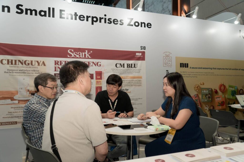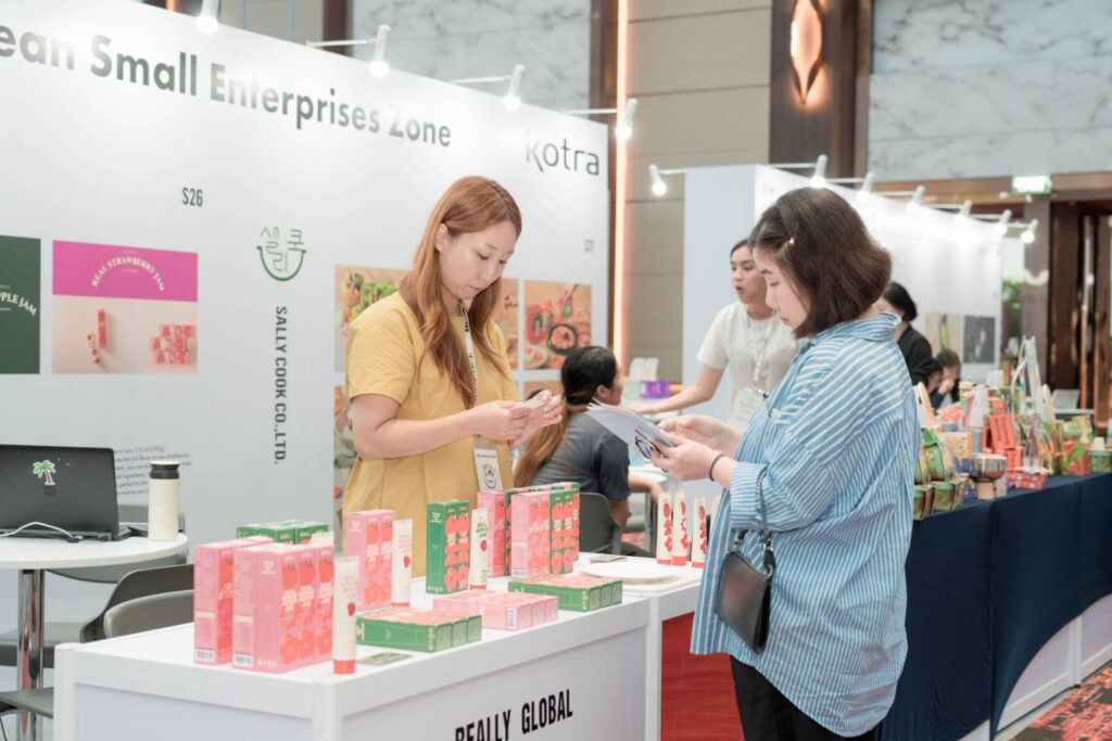 Trade & Business Zone โซนจัดแสดง ชม ชิม ทดลอง รวมทั้งเจรจาและจับคู่ธุรกิจ (Buyer Matching) กับผู้ผลิตและจัดจำหน่ายผลิตภัณฑ์อาหารจากเกาหลี อาทิ ขนมขบเคี้ยว ซอส เครื่องดื่ม อาหารเพื่อสุขภาพและอาหารแช่แข็ง ฯลฯ ที่เข้าร่วมงานฯ กว่า 150 แบรนด์ พร้อมสินค้า อุปกรณ์ และวัตถุดิบร่วมจัดแสดงกว่า 1,400 รายการ รวมถึงการจัดแสดงจาก 6 พาวิเลียน ประกอบด้วย นิคมอุตสาหกรรมอาหารแห่งชาติของเกาหลี (Korea National Food Cluster (Foodpolis)), สถาบันอุตสาหกรรมอาหารชีวภาพ ช็อนบุก (Jeonbuk State Institute for Food-Bioindustry), คังวอน พาวิลเลียน, เมืองยังจู จังหวัดคยองกี พาวิลเลียน, จอนนัม พาวิลเลีย และ เซจู พาวิลเลีย