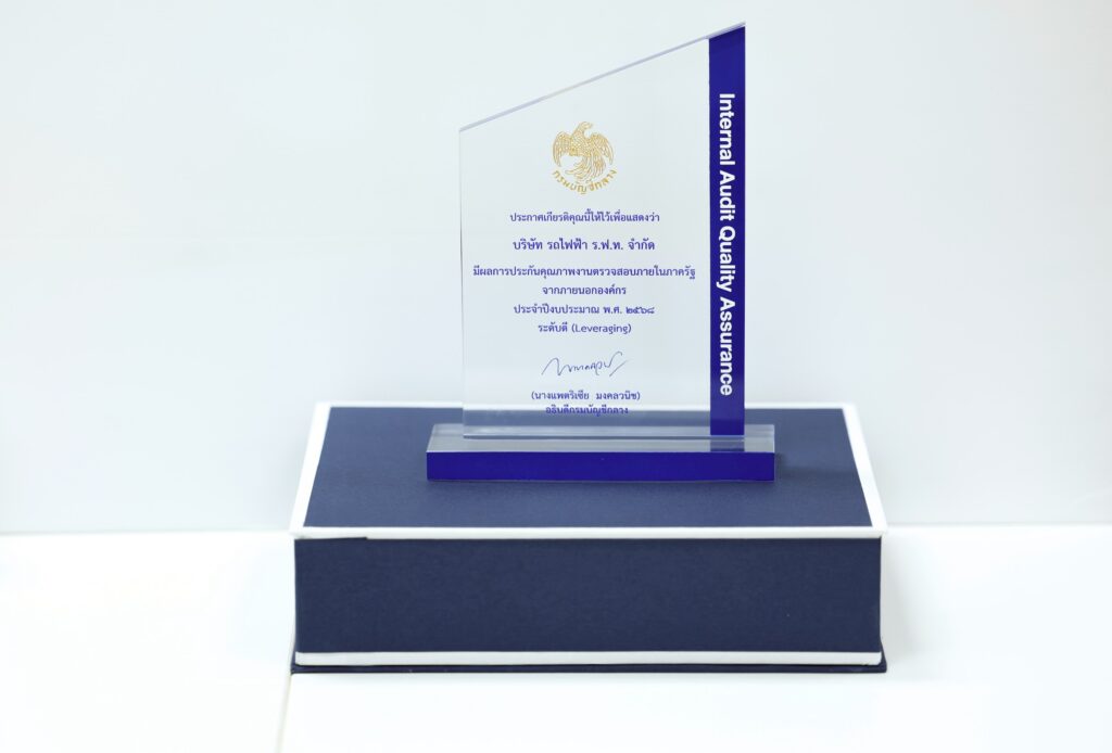 บริษัท รถไฟฟ้า ร.ฟ.ท. จำกัด เข้ารับรางวัลประกาศเกียรติคุณการประกันคุณภาพงานตรวจสอบภายในภาครัฐจากภายนอกองค์กร ประจำปี 2568 “ระดับดี”