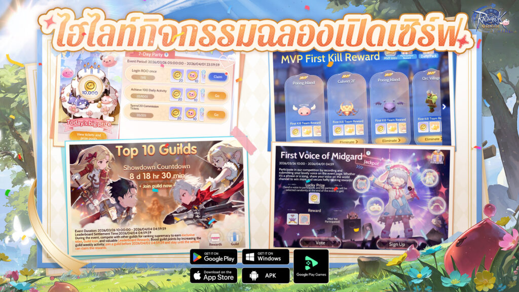เทศกาลเฉลิมฉลองแห่ง Ragnarok Origin Classic มอบทั้งรางวัลสุดพิเศษและประสบการณ์การผจญภัยอันแสนสนุกให้กับเหล่านักผจญภัยทุกคน อย่าพลาดโอกาสสัมผัสความสนุกเหนือระดับครั้งนี้