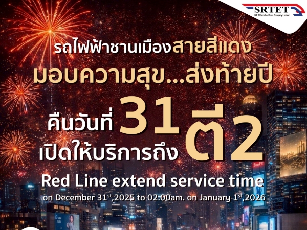 “สายสีแดง” ส่งมอบความสุข ขยายเวลาให้บริการถึง ตี 2 ในคืนเคาท์ดาวน์ เป็นของขวัญปีใหม่มอบให้แก่ประชาชน